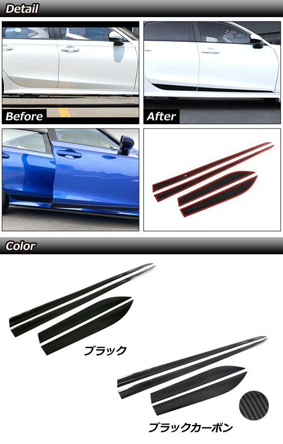 サイドドアアンダーガーニッシュ ホンダ シビック FL1 2021年09月〜 ブラックカーボン ABS製 入数:1セット(4個) AP-XT2230-BKC