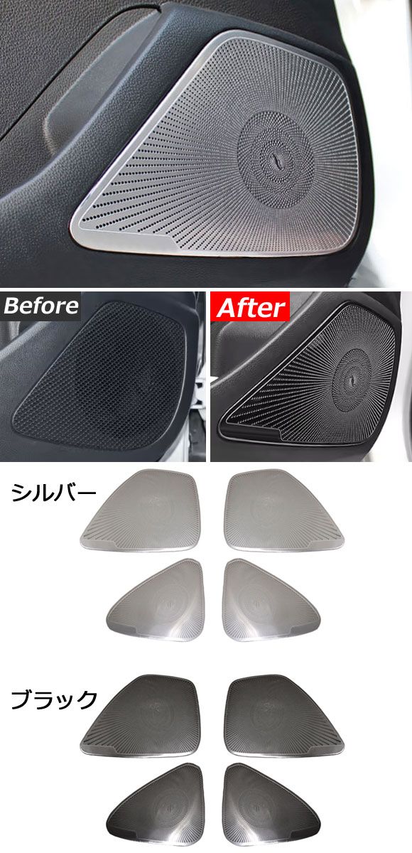 ドアスピーカーパネル トヨタ カローラクロス/ハイブリッド 10系(ZSG10/ZVG11/ZVG15) 2021年09月〜 シルバー ステンレス製 入数:1セット(4個) AP-IT3048-SI