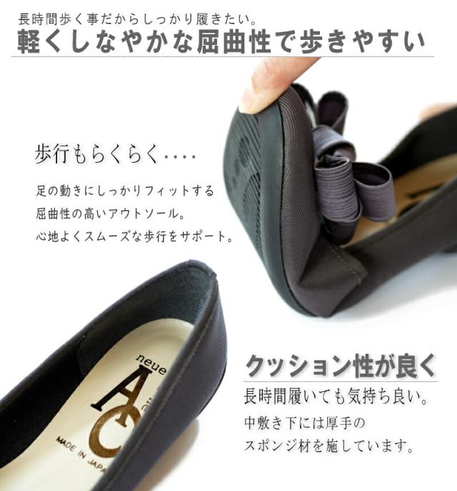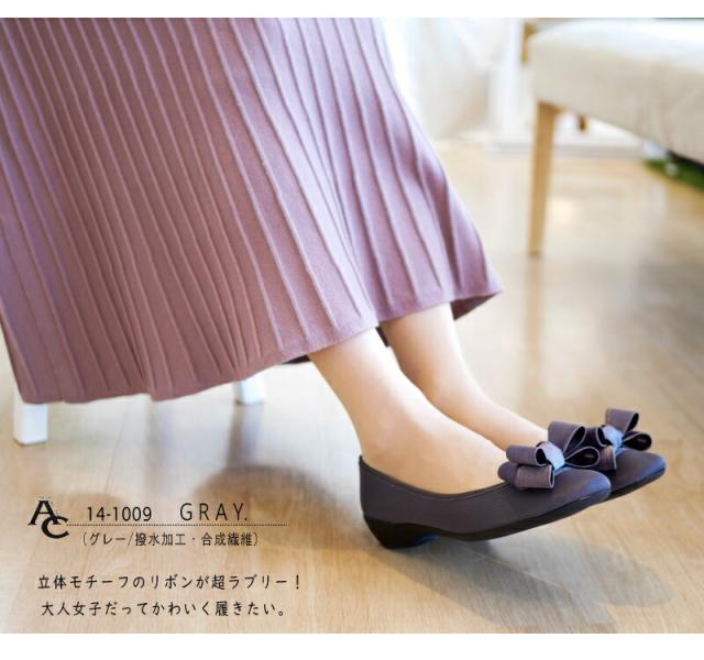 AC アミュエルコンセプト バレエシューズ 靴 レディース パンプス 日本製 軽量 撥水加工 汚れにくい リボン ラウンドトゥ モールド 黒 グレー 歩きやすい 痛くない 結婚式 卒入学 仕事 3e
