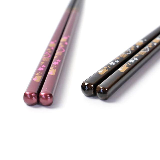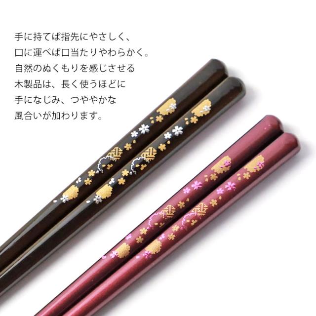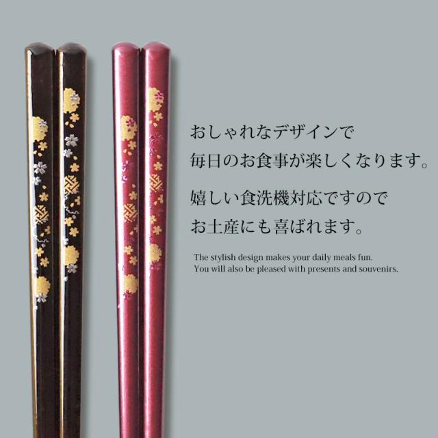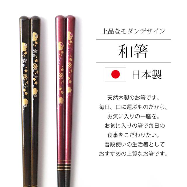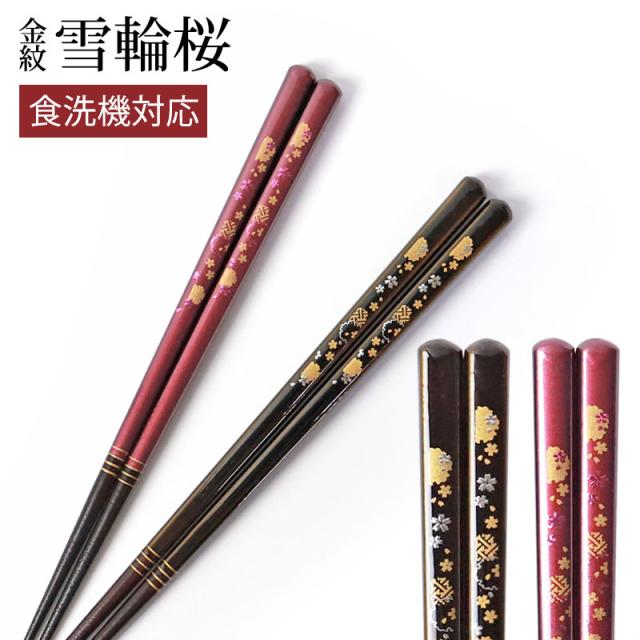 食洗機対応 箸 天然木製 23cm 21cm 滑らない 滑り止め お箸 おはし 持ちやすい ギフト 結婚祝い 金紋 雪輪桜 おしゃれ 高級感 男性 女性 日本製 国産 和モダン 母の日 父の日 プレゼント お祝い 黒 紫 さくら