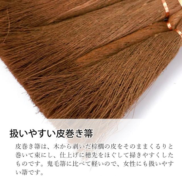 | 商品説明 | 大人気の棕櫚箒が、初めての方や大掃除に活躍する福袋セットになりました。 ちょっとした小さなスペースのお掃除に最適な荒神箒をセットしました。 小さい箒全般のことを総称して「荒神箒(こうじんぼうき)」といいます。 スリムでコシがあるので、細かい所や、深い溝の中も簡単に掻き出すことができます。 窓枠やサッシの溝そうじ、棚の上や階段など小さなスペースのお掃除に最適です。 また、棕櫚箒と相性が良いはりみ塵取りがセットされていますので豪華なラインナップになっています。 和歌山県海南市の老舗箒メーカー深海産業の「Broom Craft」ブランドの製品になります。 ■棕櫚箒について 室内の畳み掃に最適。 和歌山県 紀州伝統デザイン棕櫚箒。 棕櫚箒は数百年の歴史があるといわれる日本の伝統的な箒で、和箒の中でも棕櫚箒は耐久年数が長く、丈夫で長持ちするといわれています。 人目に触れても見苦しくないので、いつでも気軽に手にとれる場所に吊るして置けます。 電気掃除機とは違ってエコで音も静かな棕櫚箒。畳にもフローリングにも適した箒です。 皮巻き箒は、木から剥いだ棕櫚皮をそのままくるりと巻いて束にし、仕上げに穂先を1本1本の繊維にほぐします。 皮巻き箒は繊維が細いため、穂先のみをさばいて程よいコシを残しています。 皮巻き箒は鬼毛箒に比べて軽量で、女性にも扱いやすいです。 またお手頃なので棕櫚箒が初めての方にもおすすめです。 ■はりみ塵取り(ちりとり)について はりみ職人が丁寧に厚紙を貼り合わせて作ったはりみ塵取りです。 表面には天然素材の柿渋を塗っております。 柿渋には抗菌、防腐、防虫の効果が期待でき、塵取りにぴったりな天然塗料です。 箒の柄の棒に通せる穴付きです。 棕櫚箒とセットして吊るすと、穂先への日光などの紫外線からカードでき箒も長持ちに繋がります。 また、魅せる収納としておしゃれになり、デザイン性にも優れますね。 紙製のはりみは静電気が起きないので、集めたゴミが塵取りの表面にまとわりつかずノンストレスです。 集めた後は、ゴミ箱の上で傾けると、すーっとゴミ箱の中へ入っていきます。 わずか約75gと非常に軽量ですので、女性でも片手だけ取り回しできます。 使用時は、塵取りの先を軽く床に押し当てるようにするとゴミを集めやすいです。 棕櫚箒とセットにすると、非常に使い勝手と相性の良い塵取りです。 柿渋を塗っていますので少しの水分はすぐに拭いていただければ問題ございませんが、紙製の為、水気を避けて、屋内でのご使用を推奨します。 ---------- ■深海産業のBroom Craftブランドについて 深海産業は、1950年頃に深海洋治氏が棕櫚縄の生産を始め、緑化資材の製造を行ってきた和歌山県海南市の老舗メーカーです。 70年以上にわたり、お客様の生活に寄り添い続けるために、丁寧に心を込めて製作しています。 Broom Craftブランドは、棕櫚・シダ箒の歴史を大切に繋ぎ、未来や世界に広げていきたいという思いから生まれました。 歴史ある箒の作り方を基に、深海産業独自の製法で職人が一つ一つ手作りしています。 Broom Craft世界に広がる新しい工芸品です。ぜひ一度手に取ってみてください。 Broom Craft 深海産業有限会社 |