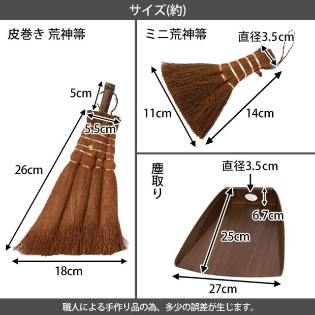 | 内容 | ・皮巻き 荒神箒 4玉・ミニ荒神箒 3玉 ・柿渋塗り はりみ塵取り(計3点セット) |