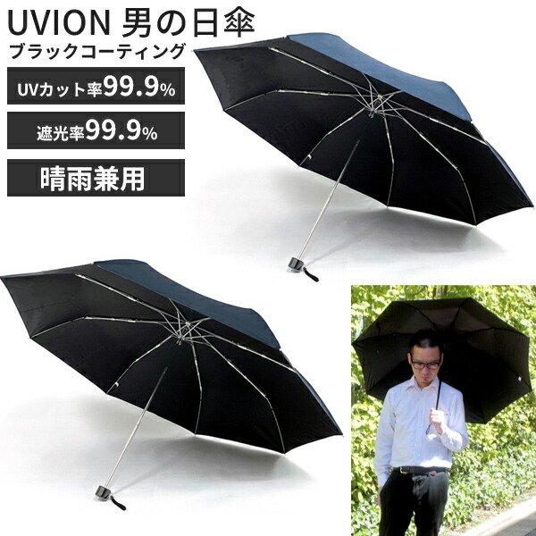 UVION 男の日傘 ブラックコーティング 3997 日傘 折りたたみ 軽量 男性用 メンズ コンパクト 男の日傘 日焼け防止 日焼け止め 晴雨兼用傘 ユビオン 全2色 折り畳み傘 かさ カサ 遮熱 紫外線防止 UVカット 男日傘 男性用日傘 黒 紺 おしゃれ ブラック ネイビー