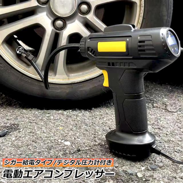 エアーコンプレッサー 小型 12V 電動 シガー給電式 エアコンプレッサー エアーポンプ コードレス 自転車 空気入れ 自動車 バイク ボール 電動空気入れ 自動車タイヤエアーポンプ コンプレッサー 電動 空気入 CDデジタル表示 1台のみ