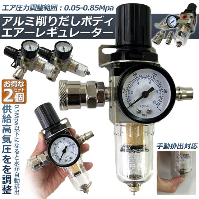 エアー レギュレーター ウォーターセパレーター エアーレギュレーター 2個セット エアフィルター エアーツール 圧力計 エアツール 減圧弁 エアブラシ フィルター コンプレッサー エアーブラシ エアーコンプレッサー 圧力調整 ホコリ除去 除水