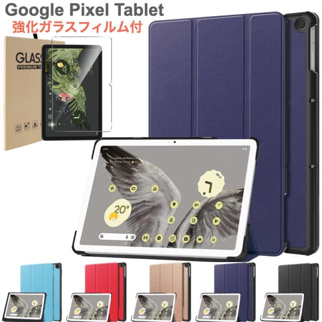 Google Pixel Tablet 2023年 ケース カバー 強化ガラスフィルム付き 保護フィルム 三つ折り スマートケース Google 充電スパーカーホルダー対応 10.95インチ 11インチ グーグル ピクセル タブレット