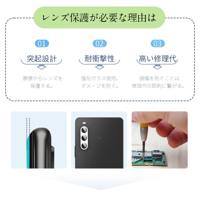 Xperia 10 V SOG11 / SO-52D / A302SO カメラ保護フィルム レンズ保護 強化ガラスフィルム カメラ保護フィルム アルミ合金枠 Sony
