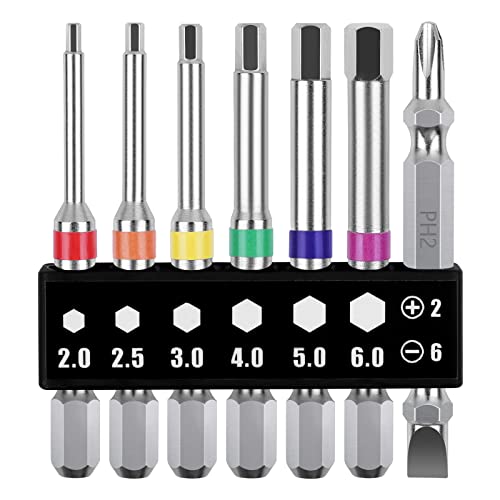OIENNI ヘックス ビットセット 7本組 ドライバービット 六角ビット 片頭ヘックス 65mm 対辺2/2.5/3/4/5/6 磁気ビット