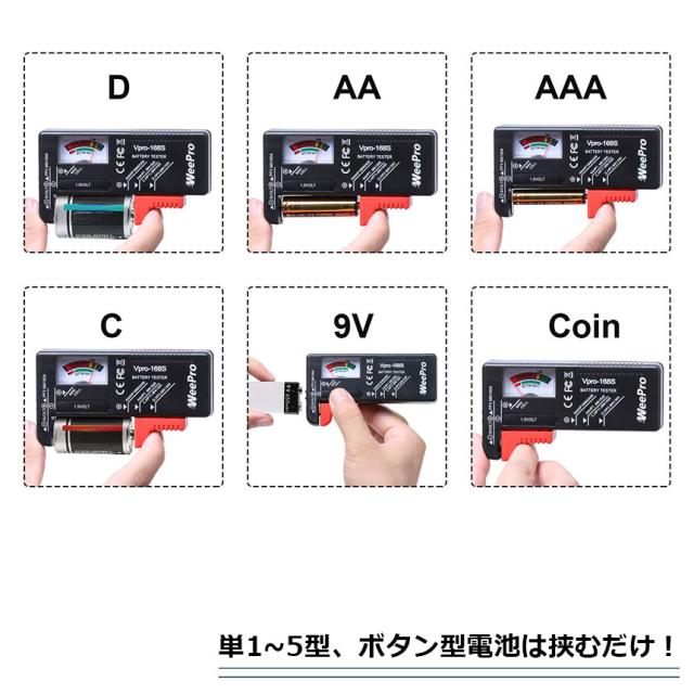 【さまざまな種類の電池をテスト】は以下のために異なるタイプのバッテリーをテストします:単3/単4/単1/単2/ 9V / 1.5Vボタン電池