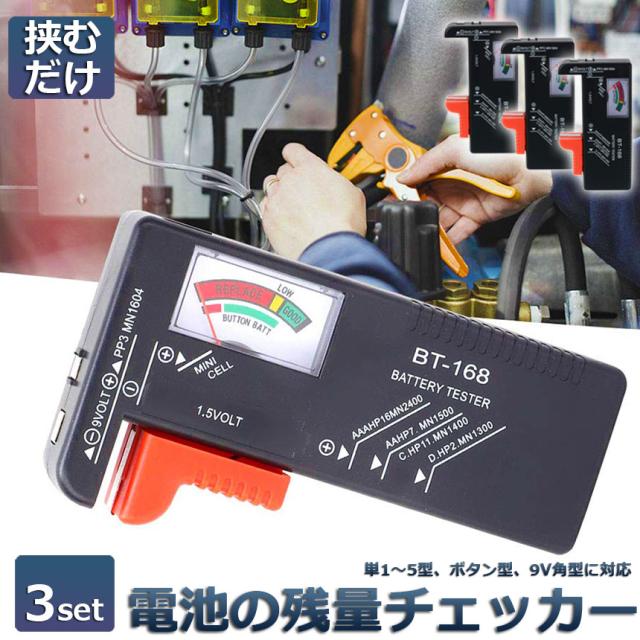 電池チェッカー バッテリーテスター 電池残量測定器 3個セット 電池 チェッカー 乾電池やボタン電池の残量チェック 残量 乾電池 単1 単2 単3 単4 単5 9V 角型 ボタン 測定 計測 アナログ 小型