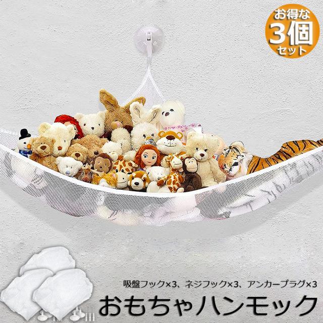 おもちゃ ぬいぐるみ 吊り下げ式 収納用 ハンモック ネット 3個セット 清潔 吸盤 お風呂場 ぬいぐるみ収納 おしゃれ スッキリ 収納 ディスプレイ お片付け 省スペース お風呂あそび 抗菌 水切り良い 大容量