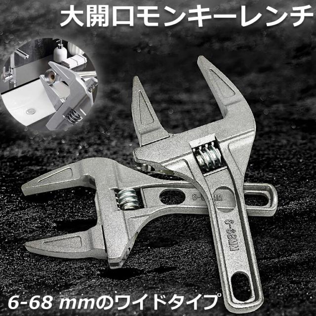 モンキーレンチ たて型 トップワイド 大の調整範囲 6-68mm 高品質 アルミニウム合金 薄型 ハンドル大開口 DIY 工具 送料無料