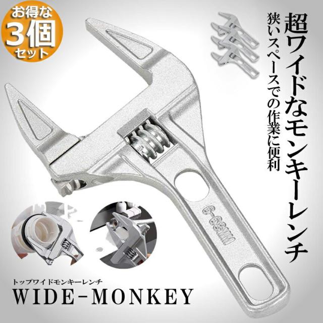 モンキーレンチ たて型 3個セット トップワイド 大の調整範囲 6-68mm 高品質 アルミニウム合金 薄型 ハンドル大開口 DIY 工具 送料無料