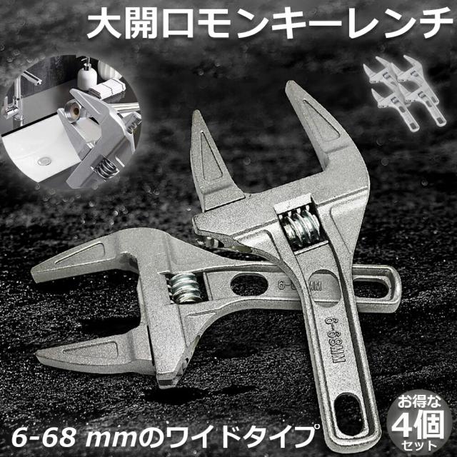 モンキーレンチ たて型 4個セット トップワイド 大の調整範囲 6-68mm 高品質 アルミニウム合金 薄型 ハンドル大開口 DIY 工具 送料無料