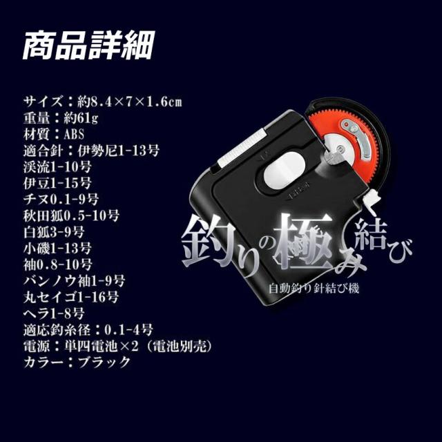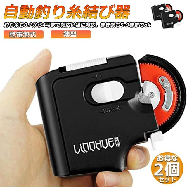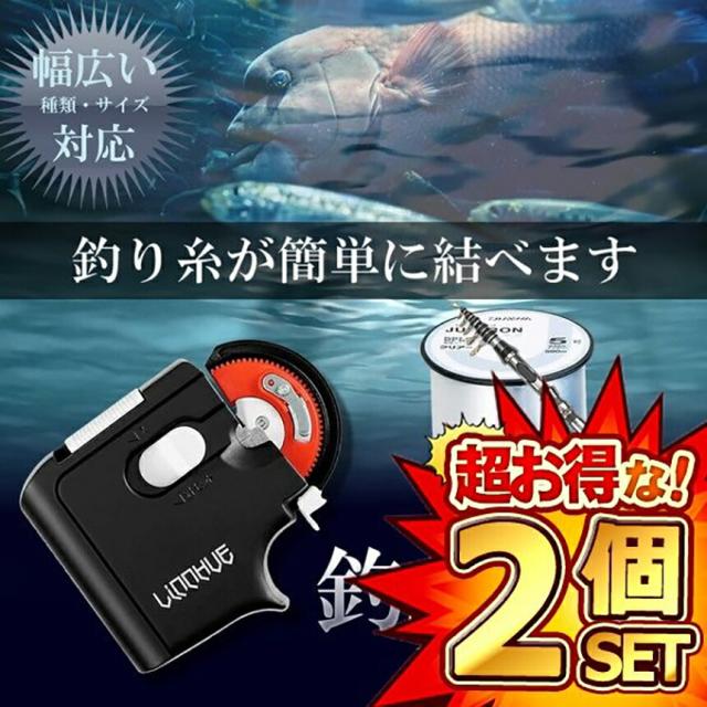 釣り 針 結び器 針結び器 自動 乾電池式 2個セット 滑り止め 針仕掛け結び器 釣具 釣りフック アウトドア 夜 コンパクト ライン 仕掛け ブラック 薄型 海釣り 船釣り 川釣り 釣り用品 送料無料