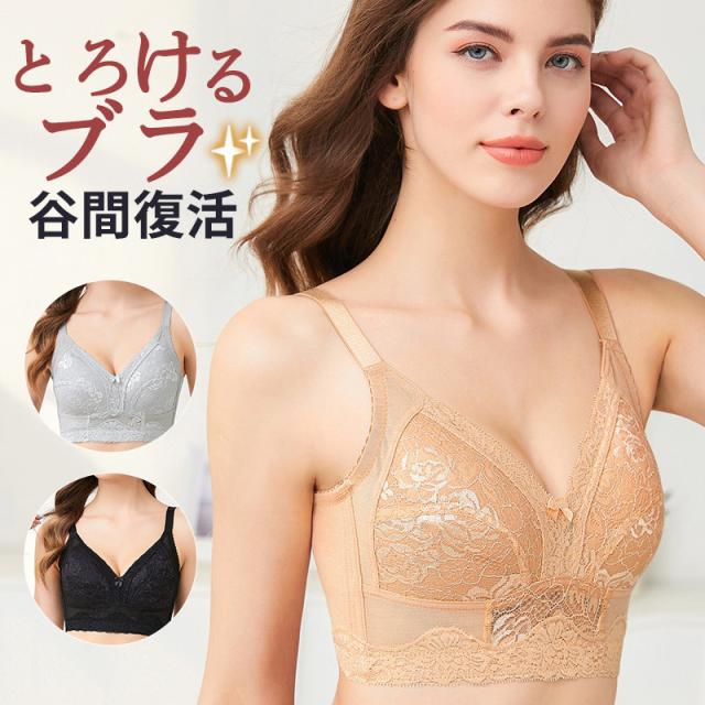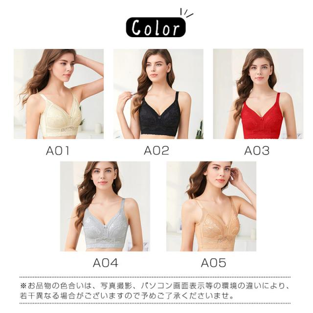 胸を小さく見せるブラ ブラジャー ナイトブラ ノンワイヤー 大きいサイズ レース 谷間カバー 胸押え 下着女性 細見