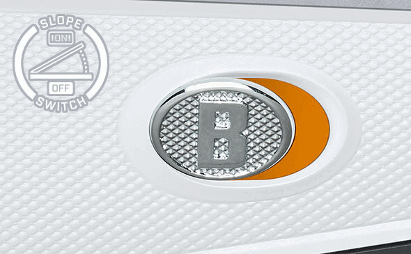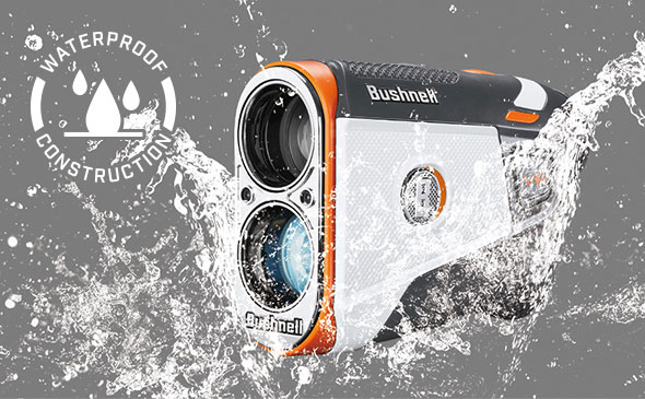 水や雨に強い、完全防水(防水等級:IPX6)。ピンフラッグ測定可能距離500ヤード、数値表示、対物レンズ径が拡張、明るく、ストレスのないクリアな視界を実現。ピンシーカーが誇る「ダブルジョルト機能」「スロープスイッチ機能」「BITEマグネットマウント」もしっかり搭載。ホワイト、オレンジ、マットグレーを基調とした洗練されたシャープなデザイン。