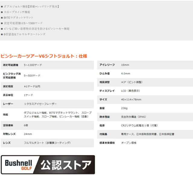 ブッシュネル ピンシーカー ツアー V6 シフトジョルト ゴルフ用レーザー距離計