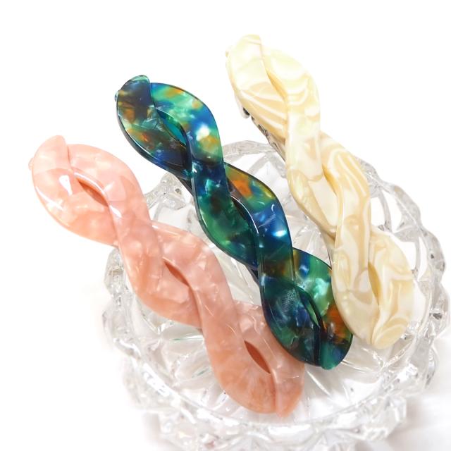 送料無料 バレッタ マーブル べっ甲柄 レディース ヘアアクセサリー