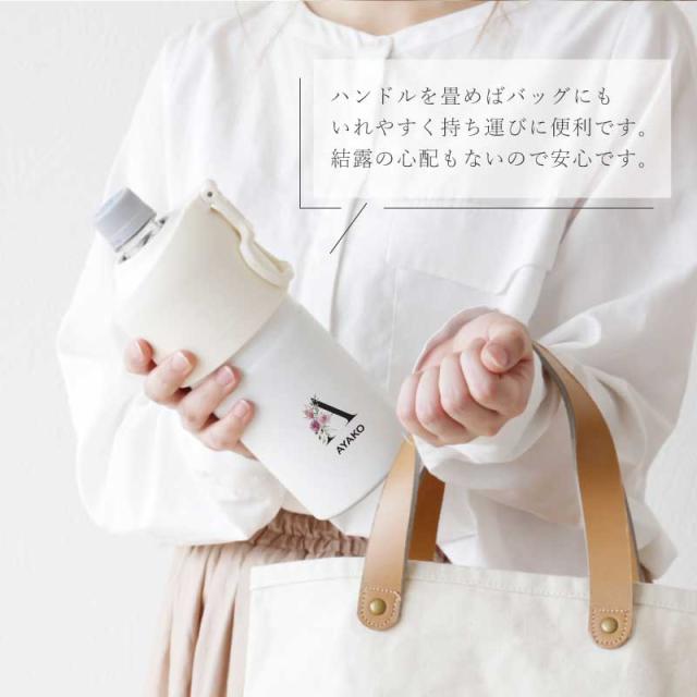敬老の日 プレゼント ペットボトルホルダー ペットボトル 保冷かわいい 折りたたみハンドル式 ペットボトルクーラー フラワーイニシャル実用的 女性おしゃれ おすすめ ステンレス 誕生日 母親 ボトルインボトル 500ml 650ml 名入れ ギフト