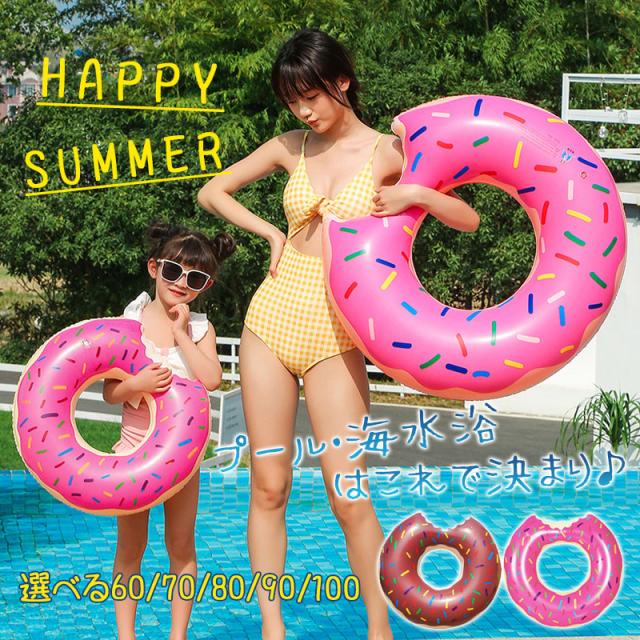浮き輪 子供 大人用 ドーナツ 水遊び かわいい 取っ手 浮具プール ピンク 茶色 浮き輪 ビーチ用 夏休み 大サイズ うきわ ブ