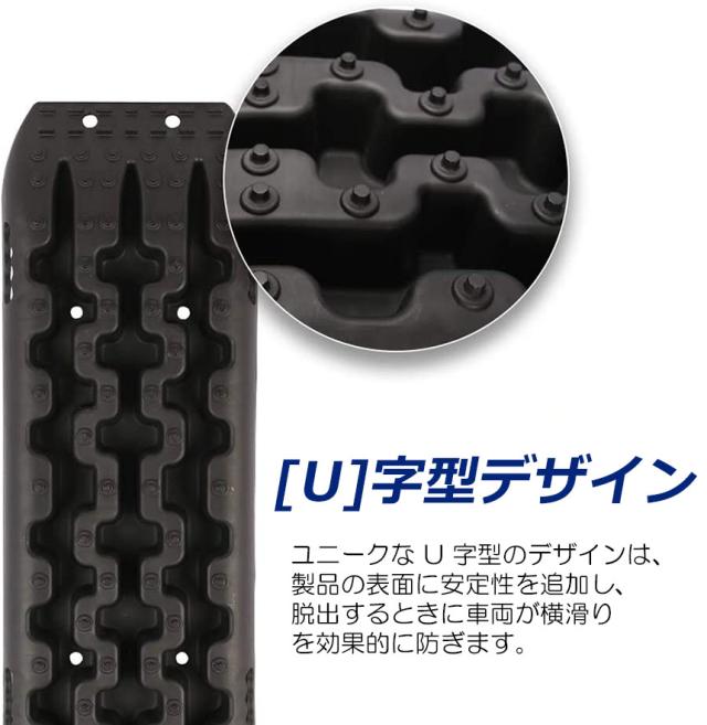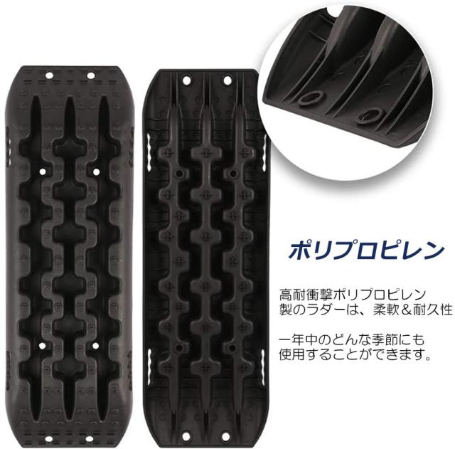 【スタックリカバリーラダー】 -本製品は、コンパクトで軽量で持ち運び便利とても便利です。車のトランクやルーフに保管して、どこにでも持ち運べます。【高品質】 強化された歯がタイヤにしっかりと掴み、安定性が向上し、横滑りが防止されます。トラクションボードは非常に柔軟で、かなり強引な置きかたでも問題ありません。