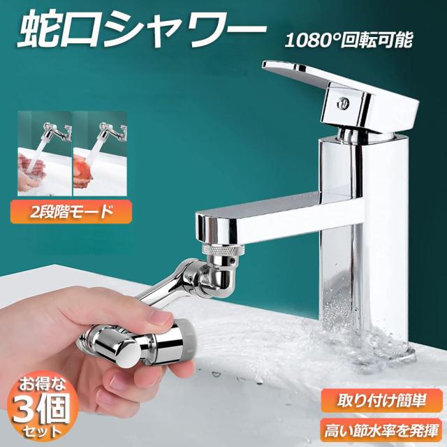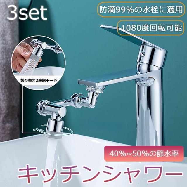 蛇口 シャワー 節水ノズル 3個セット 首振り 水栓ノズル 節水 水道 蛇口 延長 1080度回転 切り替え2段階モード 上向き/下向きに切り替えられる 噴霧器 泡沫器 多機能 浴室水栓 洗面台 キッチン水栓 耐久性のある銅頭 表面クロムめっき 蛇口アダプ