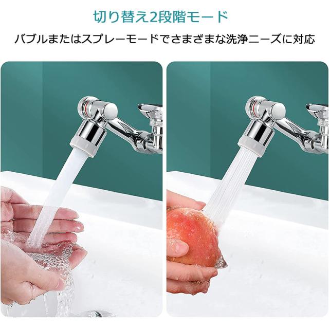 【二種モード】蛇口ノズルは2種水流効果モードがあります。シャワーモード:水圧が高い、水流スピードも速いです。シンクの掃除やお皿などの洗浄に適しています。泡沫モード:水が柔らかに流れます。手洗い・洗面などに適しています。