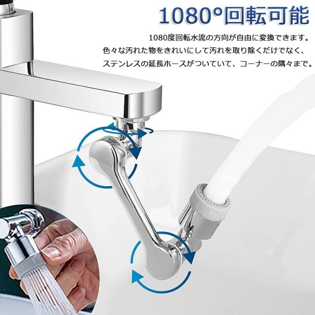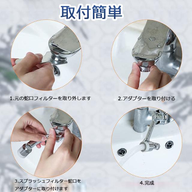 【アップグレードモデル1080°回転スプラッシュ防止フィルタ蛇口】:この回転水槽蛇口バブラーを全面的にアップグレードし、タップは吐水口に360°、上下に360°、左右に360°回転、簡単に曲げたり折りたたんだりすることができ、水を水槽の隅々まで到達させ、顔とうがいを洗いやすくします、シンクを掃除したりするのが便利です!注:需要に応じて、スイベルアームの締まり具合を調整します(写真を見る)。【二種モード】蛇口ノズルは2種水流効果モードがあります。シャワーモード:水圧が高い、水流スピードも速いです。シンクの掃除やお皿などの洗浄に適しています。泡沫モード:水が柔らかに流れます。手洗い・洗面などに適しています。
