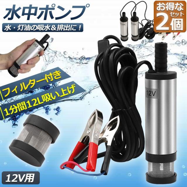 水中ポンプ 12V 小型 ウォーターポンプ 2個セット 12L/min バッテリークランプ 電動 ポンプ ケーブル 3m スイッチ式 強力 給油 給水 排油 排水 灯油 海水 船舶 風呂 水槽 汚水バッテリー クランプ 給排水