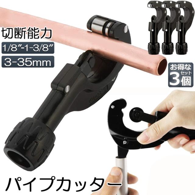パイプカッター 塩ビ ステンレス 物干し竿 3個セット 切断可能な直径3〜35mm 厚さ3mmまで 切れ味抜群 ミニパイプカッター 銅管 アルミ管 ステンレス管 塩ビ管 切断可能 携帯型パイプカッター バリ取りカッター付