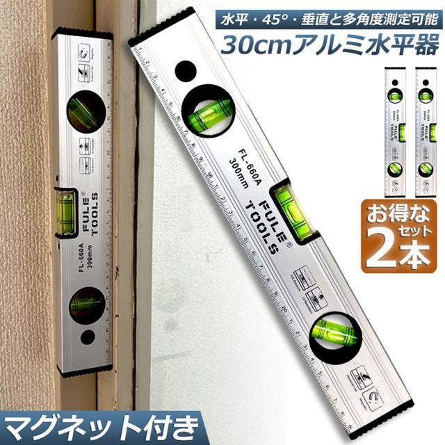 水平器 マグネット 水準器 レベル 2本セット アルミ合金 レベル磁気 測定工具 角度定規 30cm 測定器 日曜大工 大工道具 建築現場 土木 配管 DIY