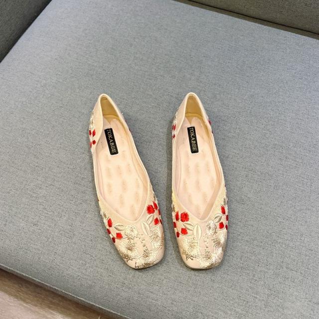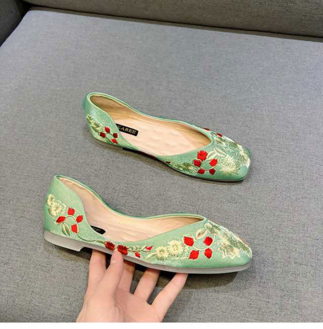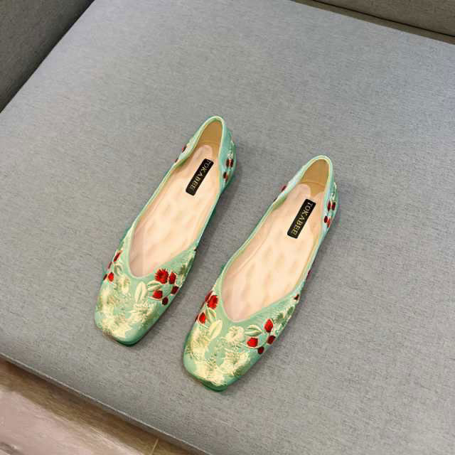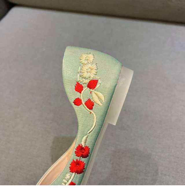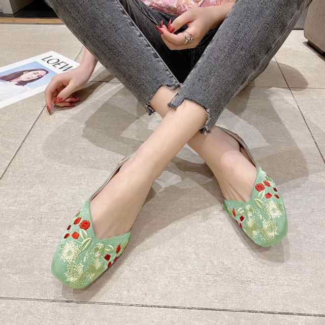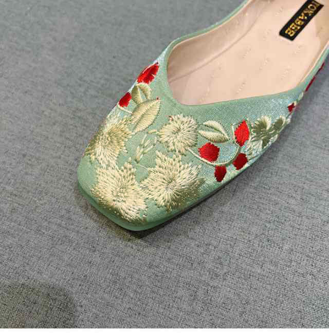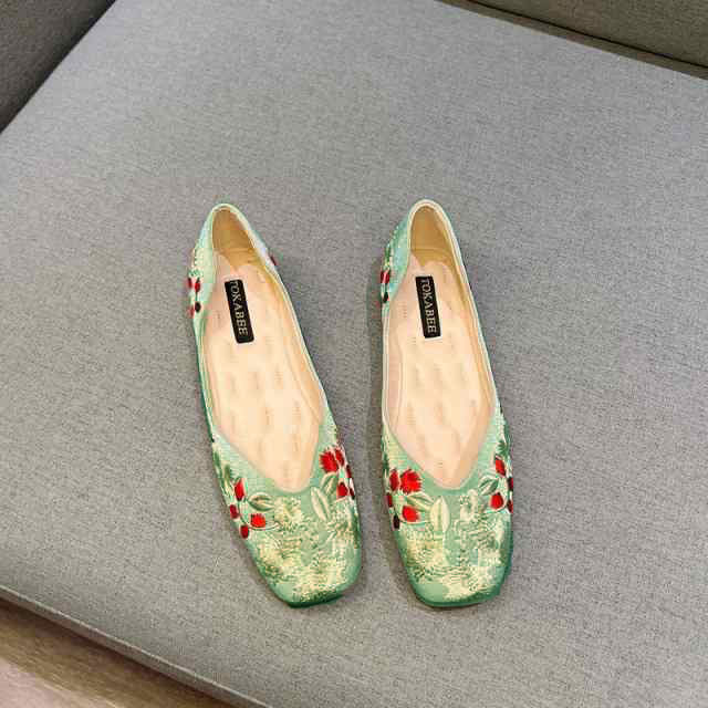 刺繍 パンプス 痛くない ぺたんこ バレエシューズ ローヒール 夏 フラットパンプス 走れる スクエアトゥ Vカット 通勤 パンプス オフィス 通勤 通学 柔らか