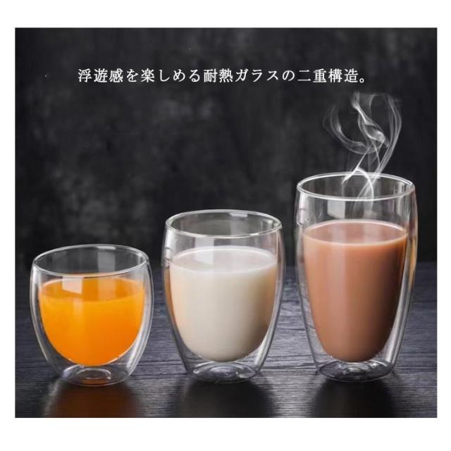 | 浮遊感を楽しめるダブルウォール構造のグラス。【150ml/250ml/350ml/450ml】【6個セット】 浮遊感を楽しめる耐熱ガラスの二重構造。 冷たいものはもちろん温かいものにもお使いいただける耐熱耐冷のダブルウォール仕様です。 断熱効果があるため氷が溶けにくく、冷たさや熱さをより長くキープします。 季節・環境問わず、様々なシーンで活躍するグラスマグです。 | |