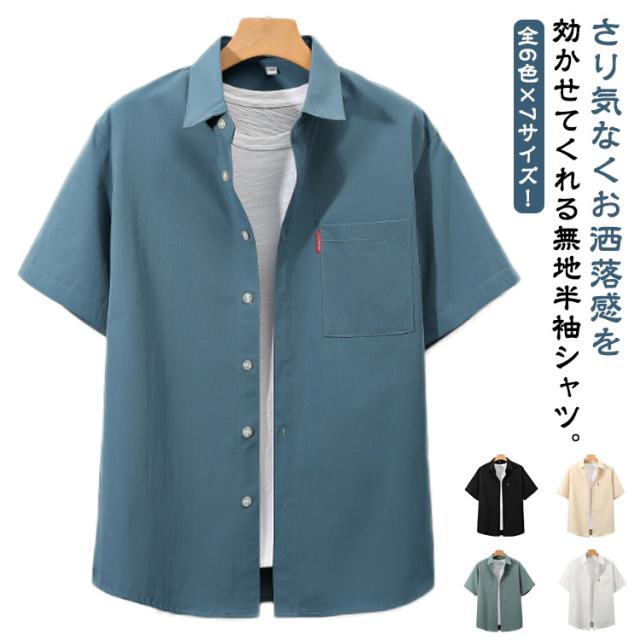 全6色×7サイズ!夏服 メンズシャツ 半袖シャツ 送料無料 メンズ 胸ポケット シャツ 半袖 カジュアルシャツ ビジネス ゆったり 大きいサイズ 4L 5L 6L夏物 父の日 ギフト シンプル 無地