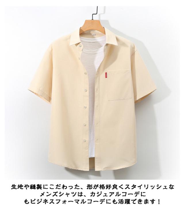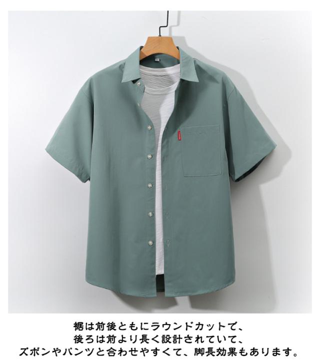 | 全6色×7サイズ!さり気なくお洒落感を効かせてくれる無地半袖シャツ。 どこから見てもかっこいいシルエット、追細部までこだわり。 左胸にポケットが設置していて、シンプルでおしゃれな一着です。 裾は前後ともにラウンドカットで、後ろは前より長く設計されていて、ズボンやパンツと合わせやすくて、脚長効果もあります。 生地や縫製にこだわった、形が格好良くスタイリッシュなメンズシャツは、カジュアルコーデにもビジネスフォーマルコーデにも活躍できます! | |