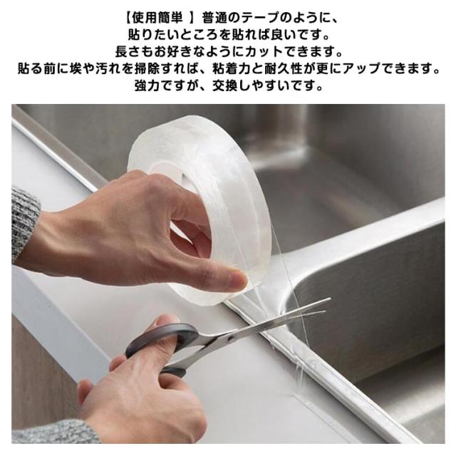 3個セット!コンロ 隙間 トイレ 防水 防カビ 透明テープ すきまテープ すき間テープ 隙間 テープ 防油 隙間テープ 防水 すき間 汚れ カビ 防止 接着 補修材料 すき間にピタッ! 透明テープ