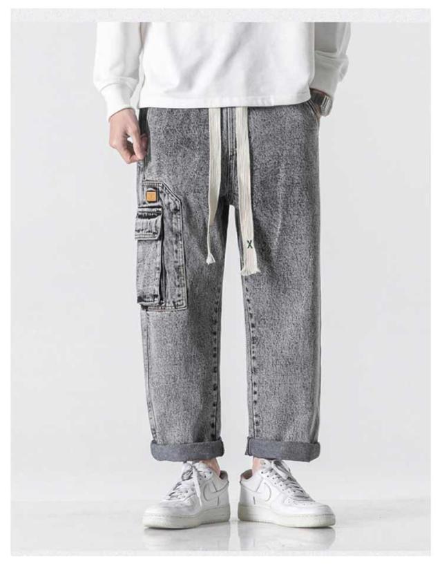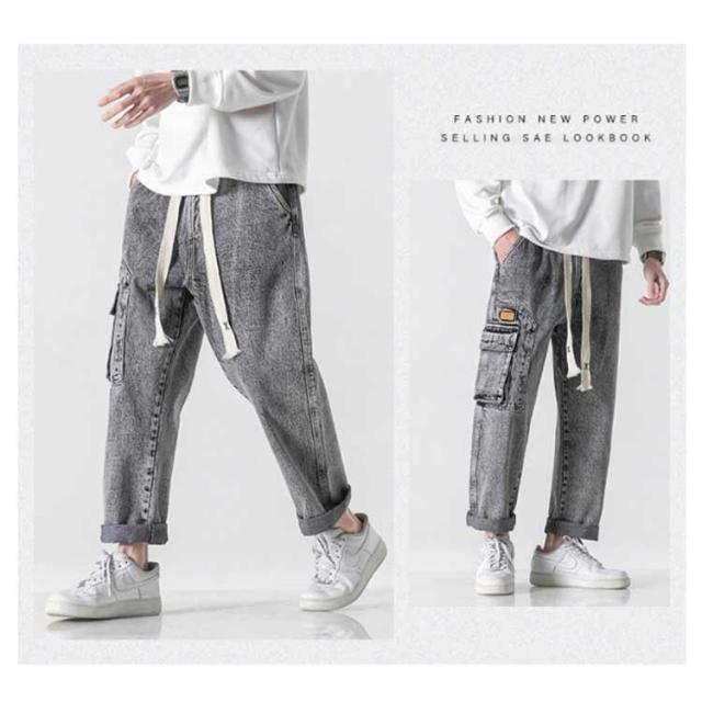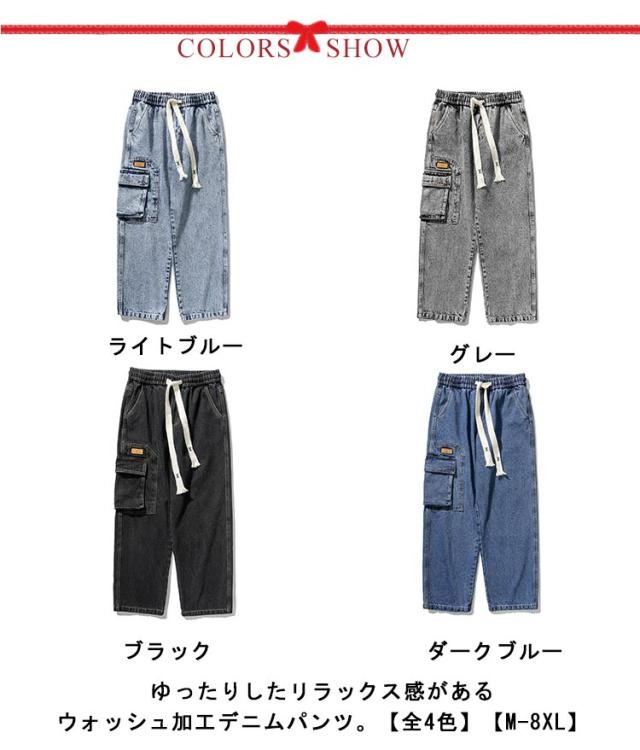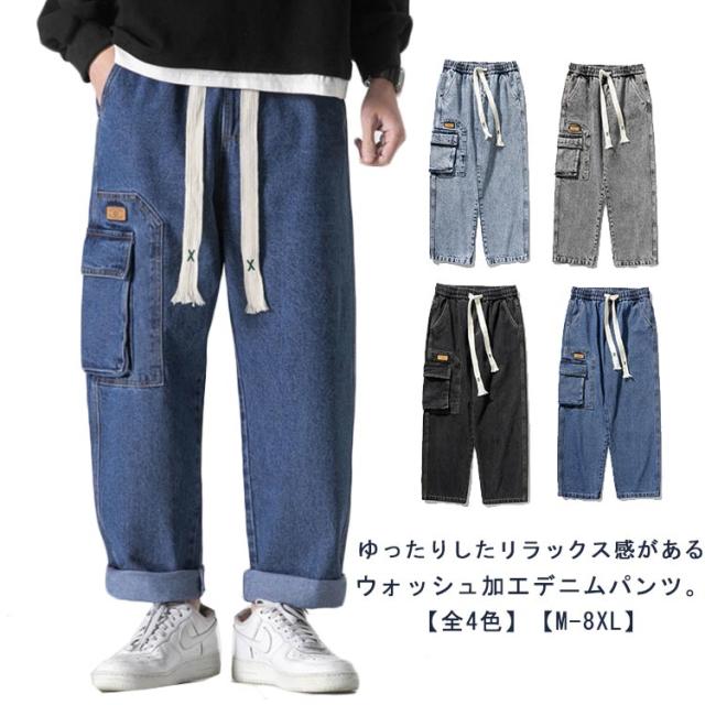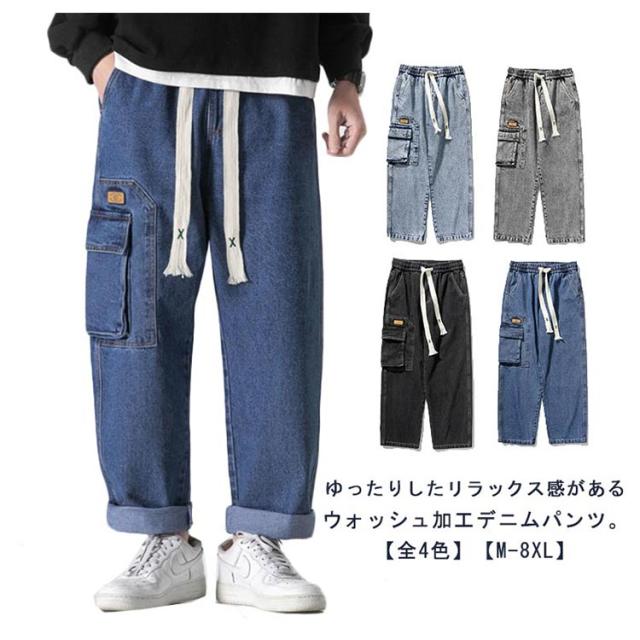 | ゆったりしたリラックス感があるウォッシュ加工デニムパンツ。【全4色】【M-8XL】 飽きのこないデニム素材とサイトビッグポケットデザインで、周りに差をつけるかっこいい1本 古着のような加工感と洗いをかけた落ち感のある生地もこなれた印象に。 ウエストは紐で調節可能で、紐を垂らすことでコーデのアクセントになります。 窮屈感のない穿き心地に。ロングシーズン(1年中)活躍できるタフな程よい肉感も魅力的。 タウンユースはもちろん、キャンプなどのアウトドアシーンにも! また、ストリートファッションや韓国ファッションなどにもオススメの1本です! | |
