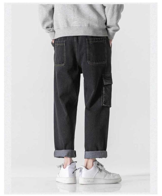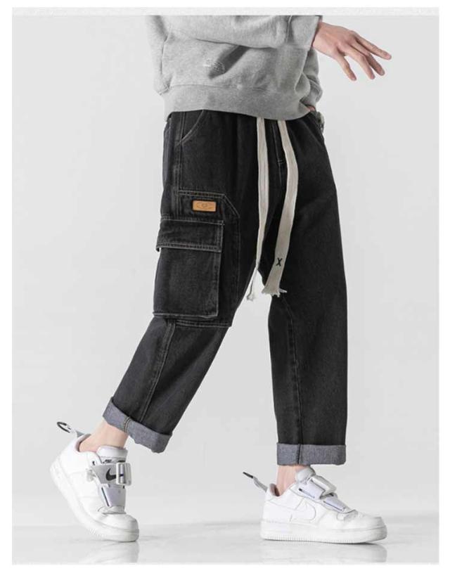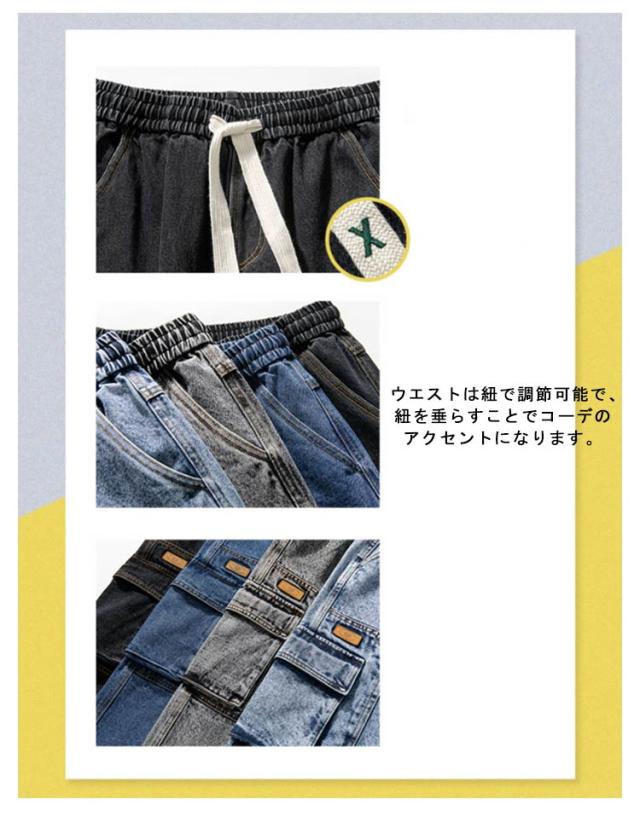 デニム カーゴパンツ B系 メンズ ワークパンツ ミリタリー デニムパンツ 大きいサイズ デニム ワイドパンツ デニムカーゴ パンツ ズボン ジーパン ジーンズ カジュアル ダンス衣装 ヒップホップ ストリート ゆったり ルーズ 春夏秋 黒 グレー