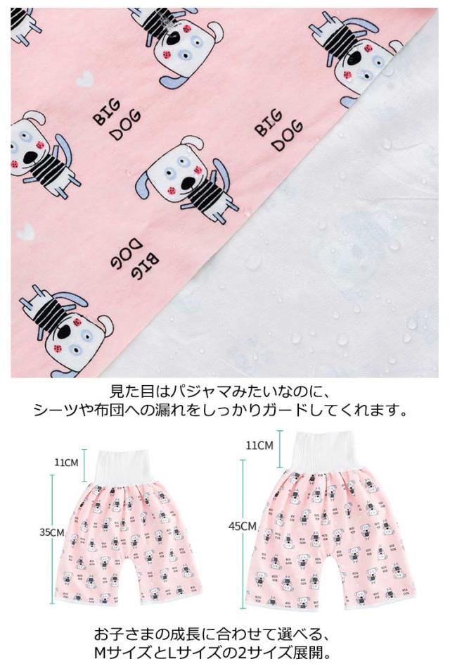 | 子どものおねしょ対策・トイトレに大活躍する防水おねしょパンツ。 寝返りしやすくズレにくいズボンタイプ。 ウエストは総ゴムでできており、脱ぎ履きしやすいのも嬉しいポイント。 生地は肌に触れる部分は心地良いパイル生地、真ん中は水を通さないラミネート加工を施されているので、快適な肌触りです。 お昼寝やお泊りの時にもおすすめです♪ トイレトレーニング中のお子さまのトレーニングパンツにもオススメ。 | |