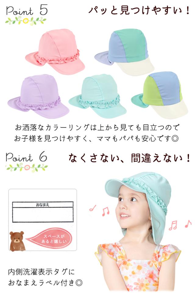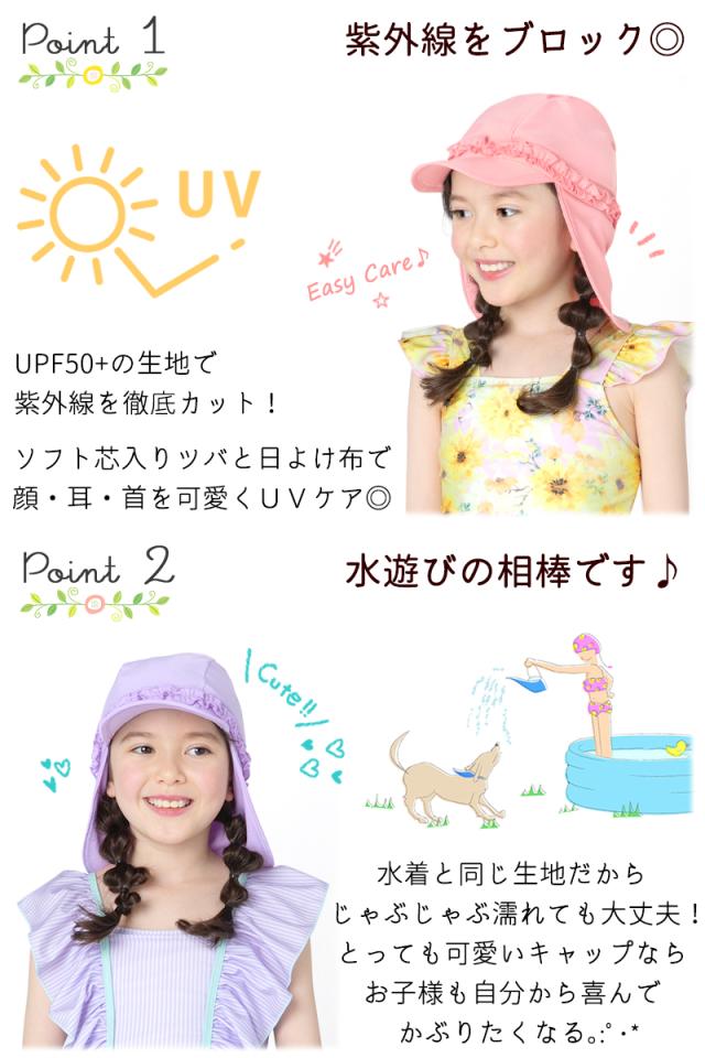 商品カテゴリ : 子ども 女の子 男の子 キッズ 子供 水着 スイムキャップ キャップ フリル 帽子 水泳帽 UV UPF50+ 速乾 幼稚園 小学生 低学年 保育園 保育所 可愛い お洒落