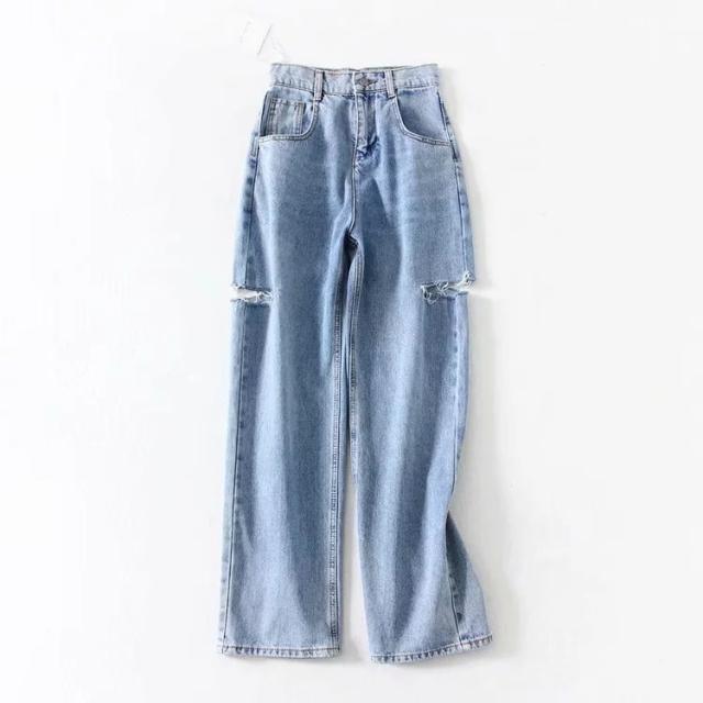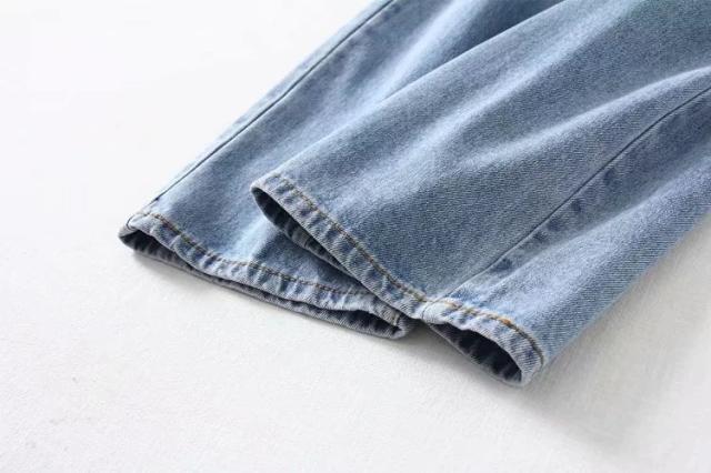パンツ デニム ジーンズ レディース ワイドパンツ カッティング ハイウェスト ダメージ加工 サイドカット