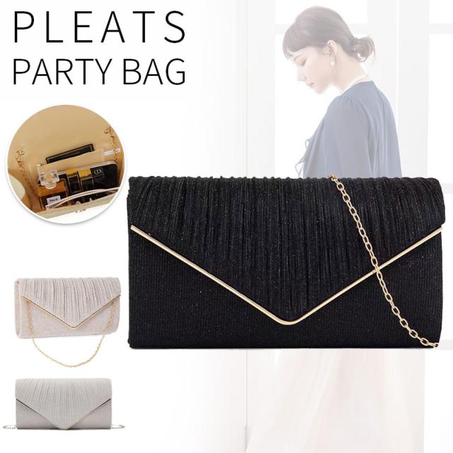 パーティーバッグ 大きめ 結婚式 黒 プリーツバッグ クラッチバッグ ショルダーバッグ 手持ち レディース 2way パーティー フォーマル お呼ばれ
