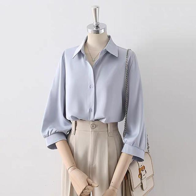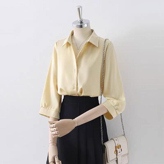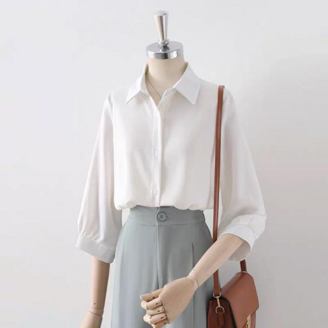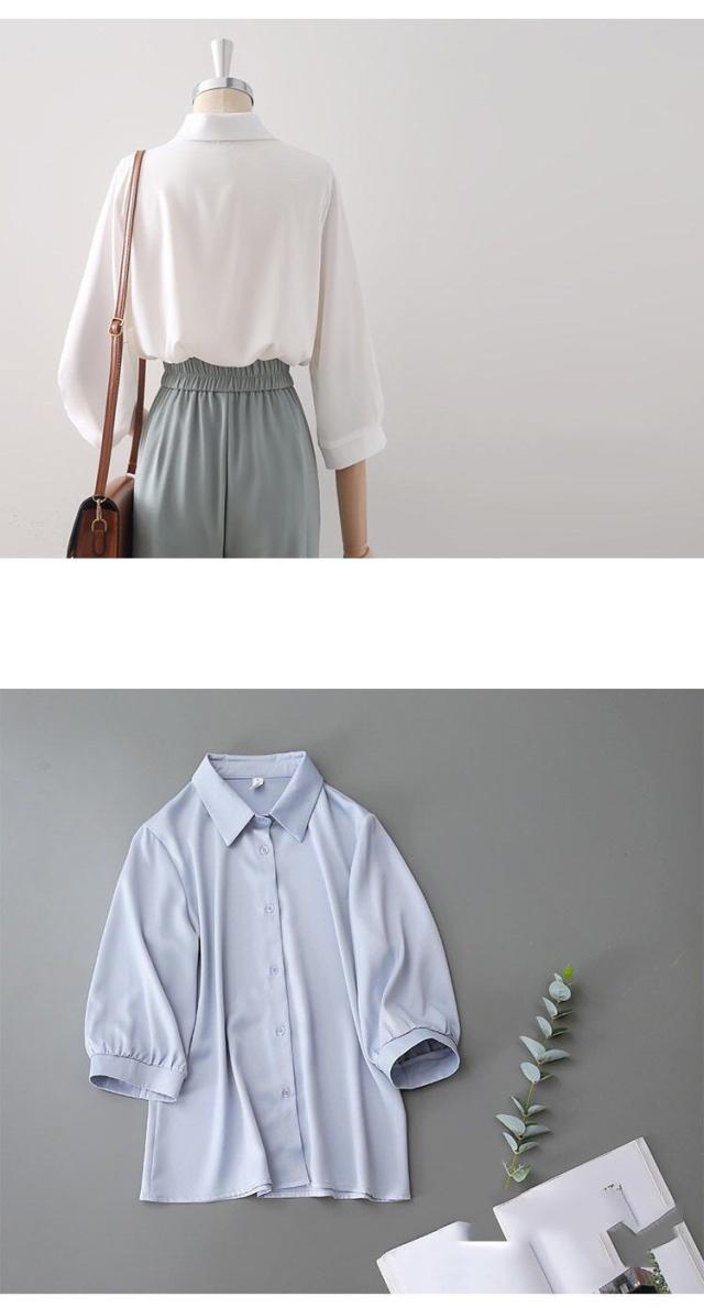 送料無料 シャツ 夏 ブラウス レディース トップス 半袖シャツ 五分袖 ブラウス 襟付き 大人 着痩せ 体型カバー ゆったり 通勤 オフィス 無地