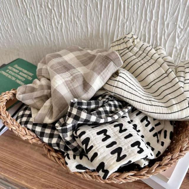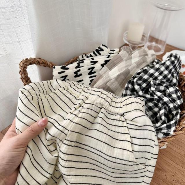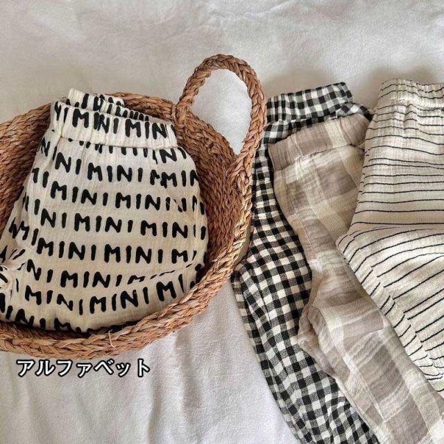 送料無料 イージーパンツ 子供 サマーパンツ 薄手 サルエルパンツ 女の子 男の子 ワイドパンツ 夏 涼しい ゆったり 長ズボン ボーダー カジュアルパンツ チェック柄 キッズ ボトムス ロングパンツ