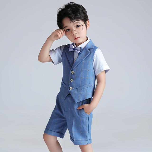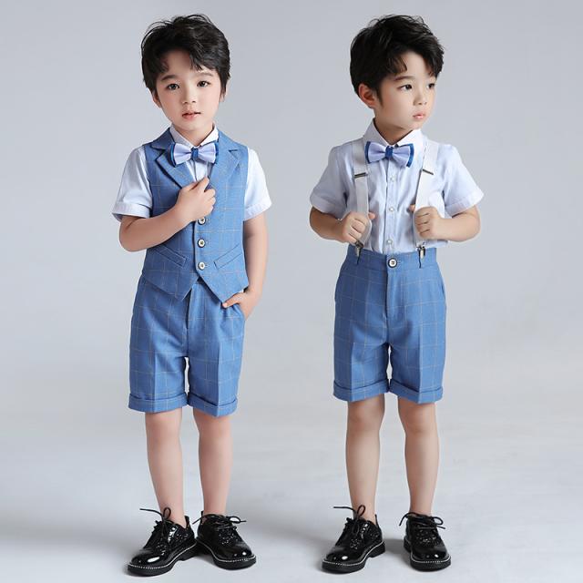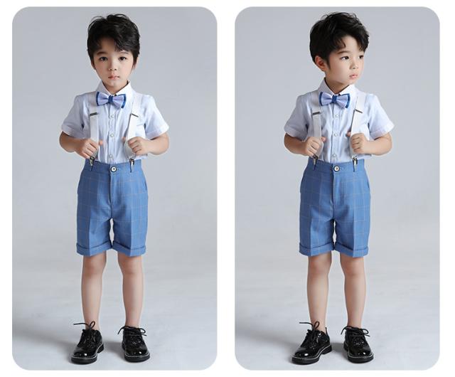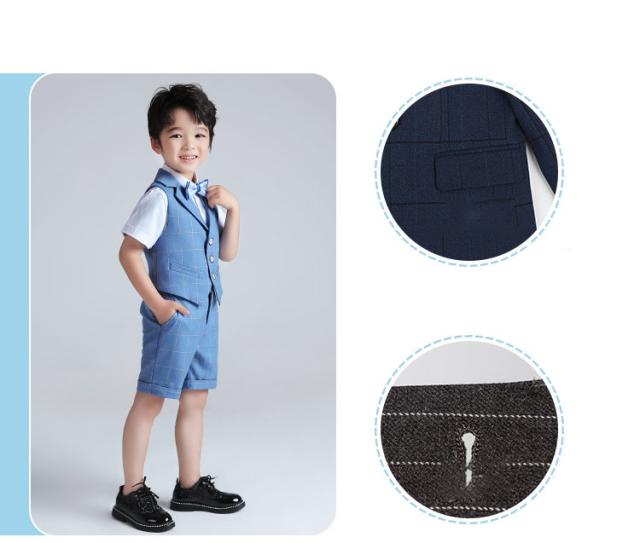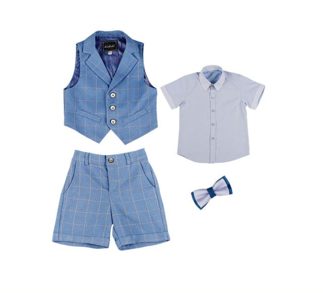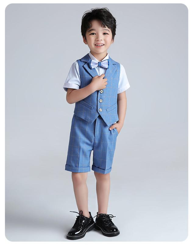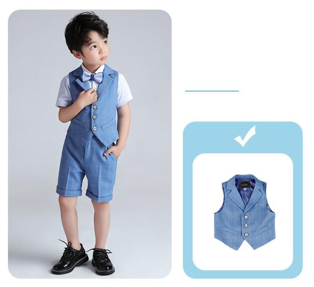 男の子 スーツ 4点セット 半袖シャツ 半ズボン ベスト セットアップ 蝶ネクタイ キッズ フォーマル 誕生日 ピアノ発表会