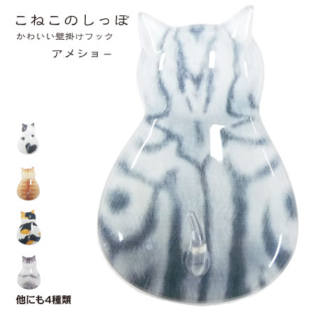 こねこのしっぽ アメショー 小物壁掛け フック 猫 インテリ 日用品 剥がれない おしゃれ 雑貨 可愛い かわいい DIY 物掛け 便利 992249