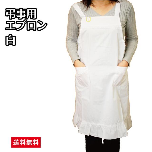 弔事用エプロン BR6-2 白 弔事用 エプロン レディース 女性向け 葬儀 通夜 葬式用 冠婚葬祭用エプロン 割烹着 慶事 祝い事 白 送料無料 992428