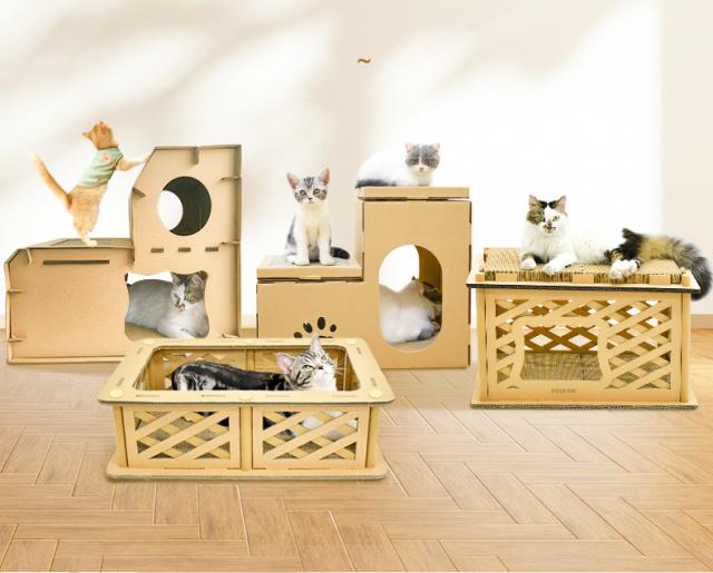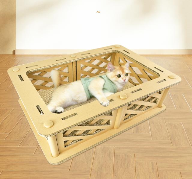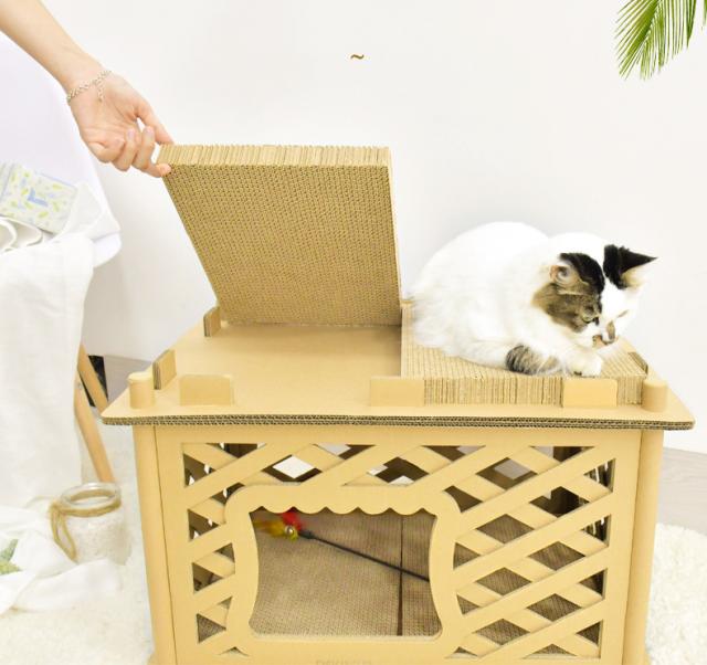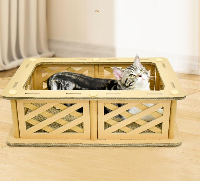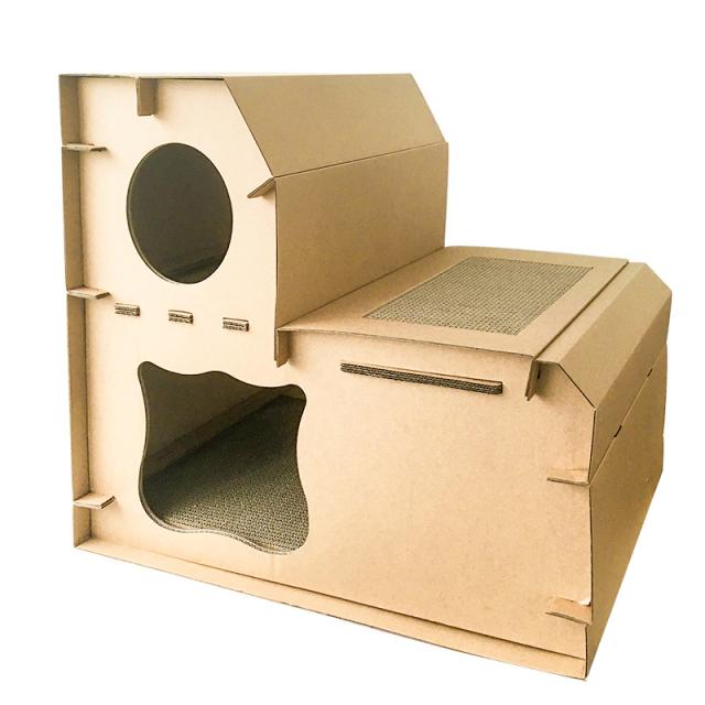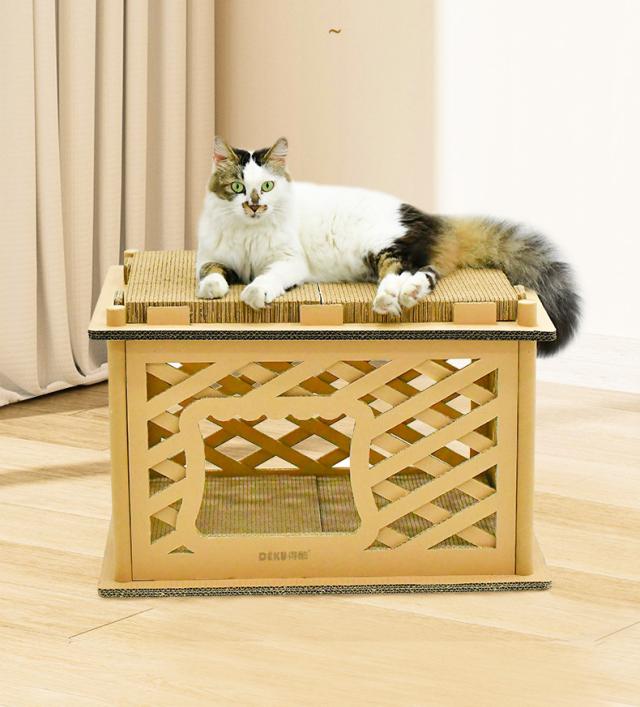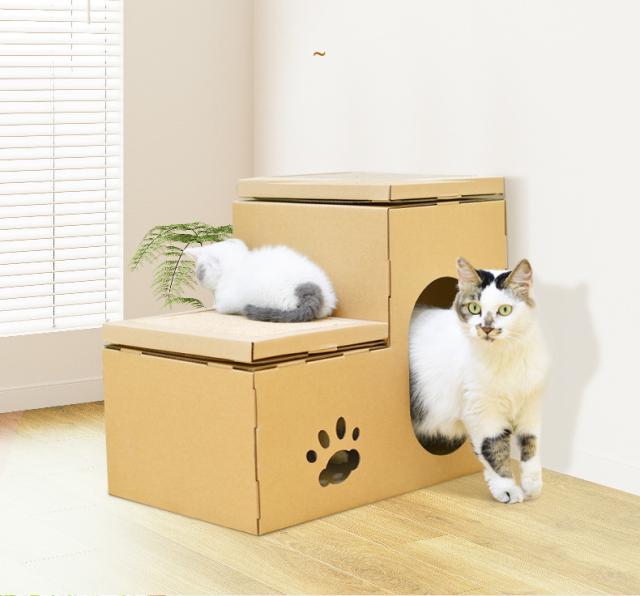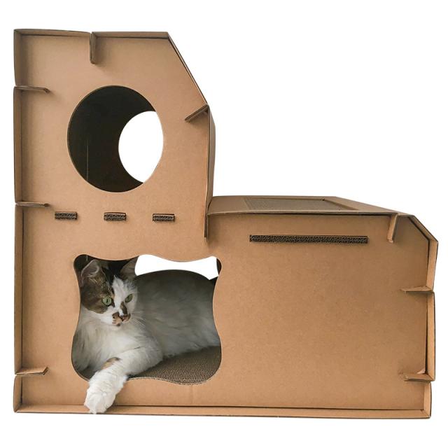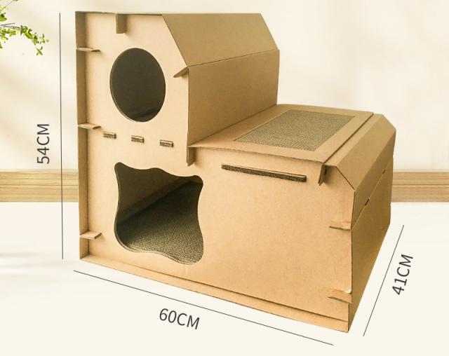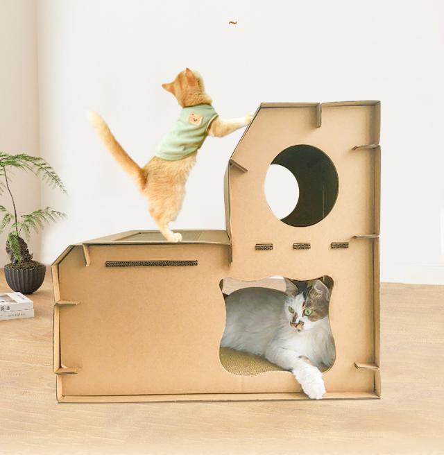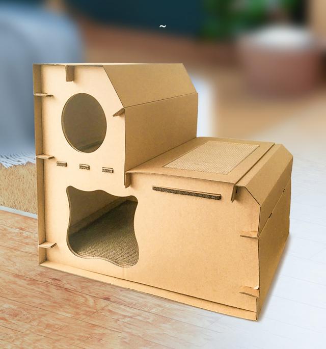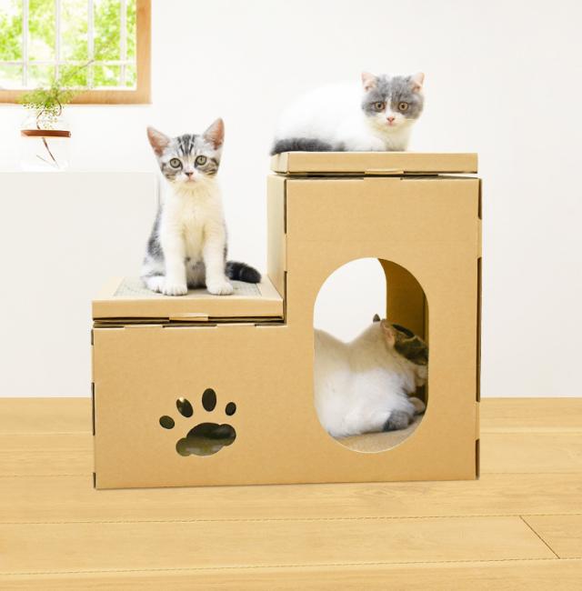 猫用 爪とぎ 二段 ダンボールハウス タワー スクラッチャー 爪磨き ストレス解消 省スペース ベッド つめとぎ