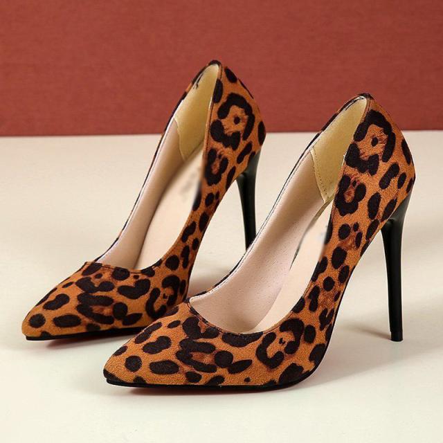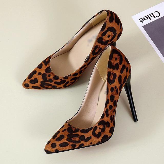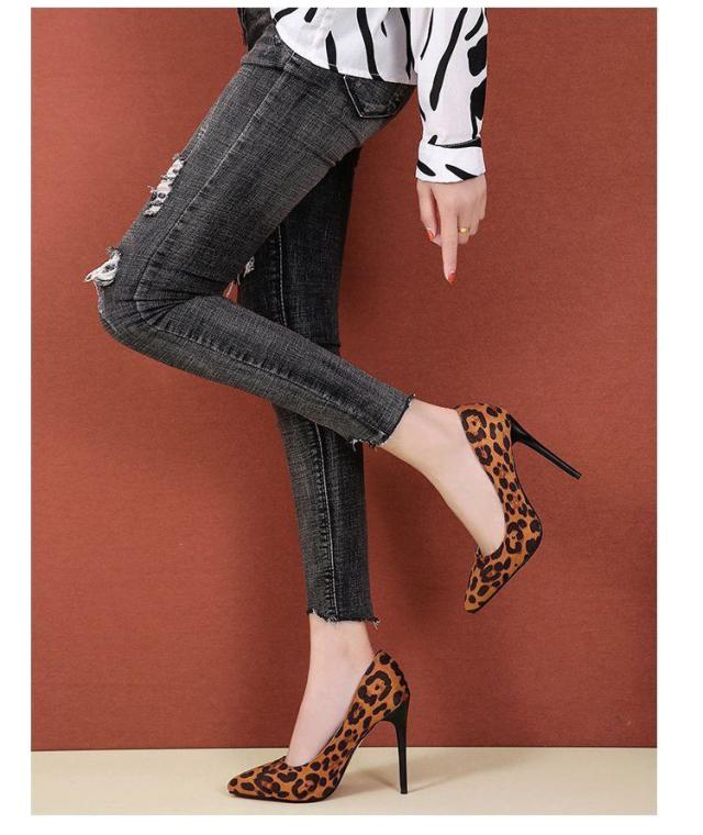 送料無料 ハイヒール パンプス ピンヒール ポインテッドトゥ 豹柄 レオパード ヒョウ柄 セクシー キャバ 靴 とんがり ピンヒール 美脚 合成皮革 通勤 結婚式 履きやすい